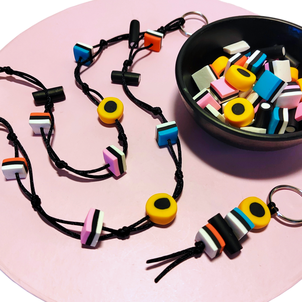 Avaimenperä englanninlakuista.Lakut on valmistettu käsityönä polymeerimassasta...