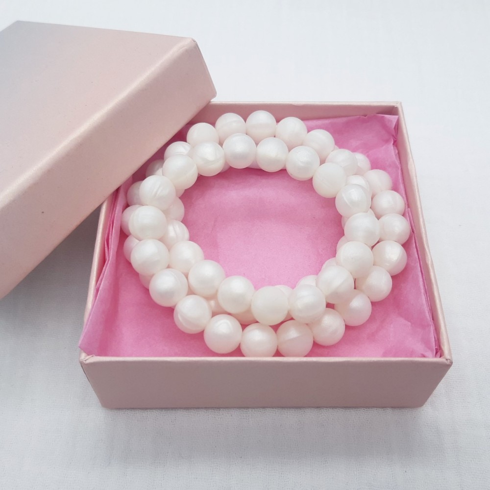 Lasten rannekoru - Pearly White PinkHelmet ovat silikonia ja ne on pujotettu kestävään kuminauh..